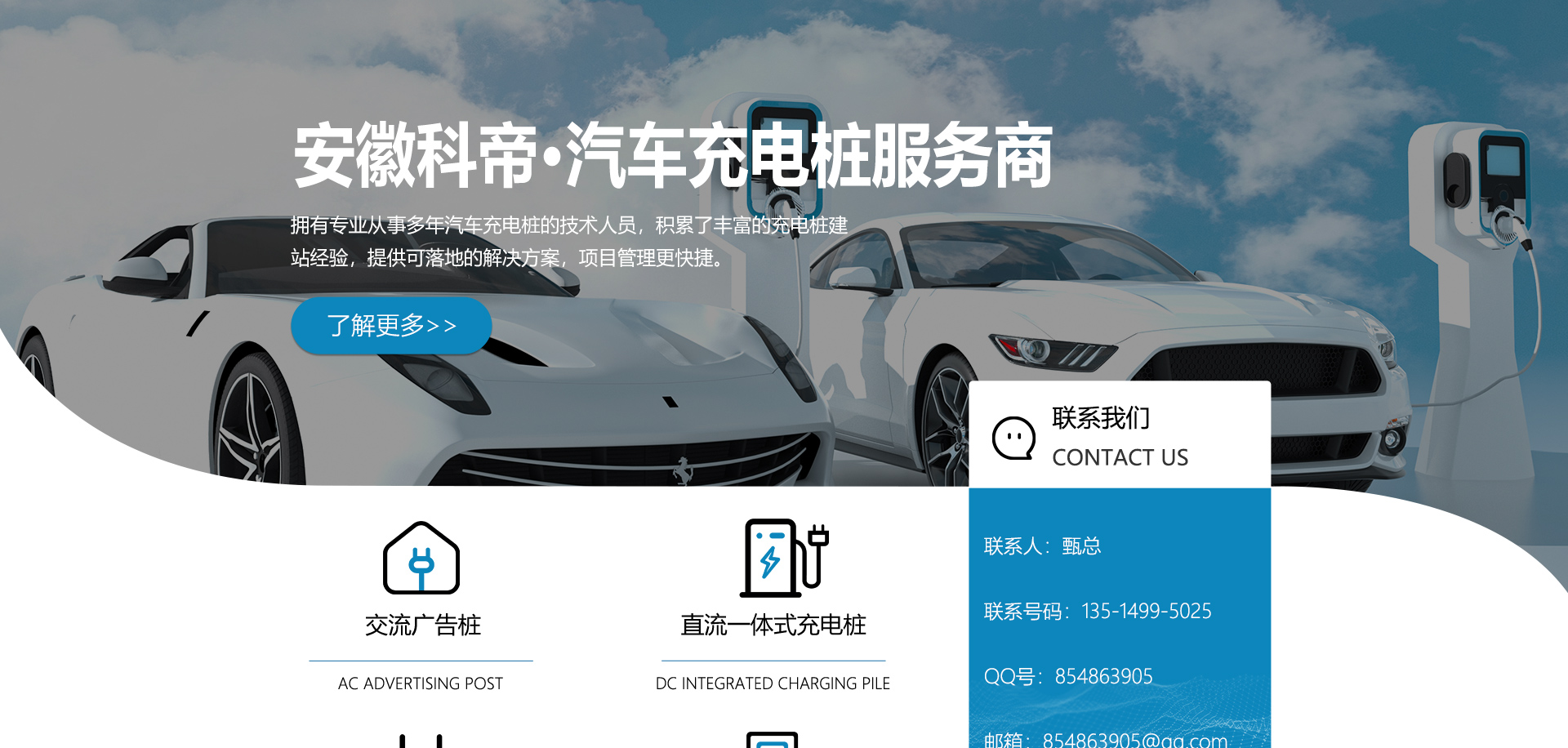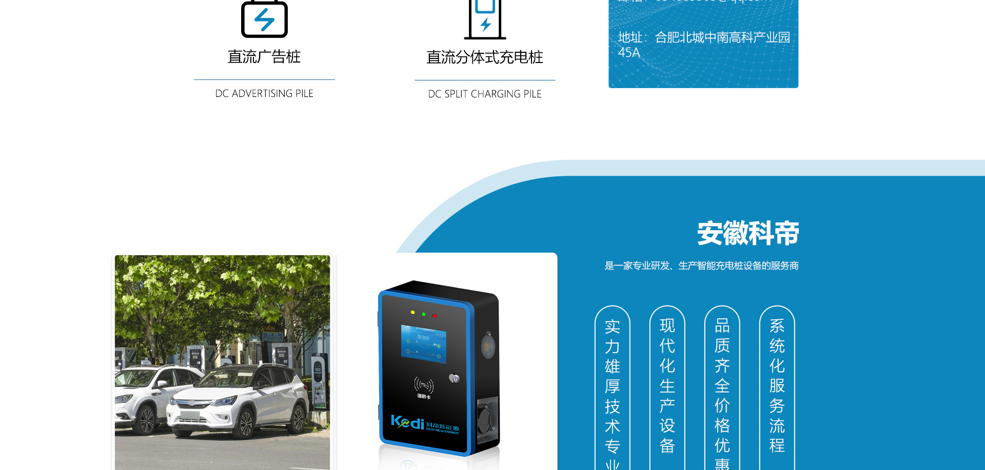 關于我們安徽科帝新能源科技有限公司坐落于安徽省會-合肥,是一家研發(fā)、生產智能充電樁設備,汽車充電站后臺監(jiān)控管理系統和生產高壓開關設備的企業.由專門的研發(fā)團隊、管理團隊按照現代化企業制度規(guī)范設立的有限責任公司。致力于為能源智能、安全的應用和節(jié)能減排提供整體的技術與產品解決方案。科帝集研發(fā)、設計、生產、銷售以及服務于一體,在電動汽車充電方案,充電設施建設和城市配電方面擁有廣泛的技術研究及經驗積累,為客戶提供安全、智能的充電設備及充電運營站建設一體化解決方案。并堅持以人為本、質量為先、顧客至上、不斷創新”的企業理念,為能源行業的發(fā)展、節(jié)能減排做出重大的貢獻。公司擁有豐富的產品種類,目前科帝已研發(fā)生產了三十多種產品,充電設備有直流一體式充電樁、直流分體式充電樁、直流廣告樁、交流廣告樁、廣告一體樁、壁掛交直流樁;等多種充電設備;每一款產品都是精心打造,力求為客戶提供優(yōu)越的用戶體驗。展望未來科帝將通過持續的自...
